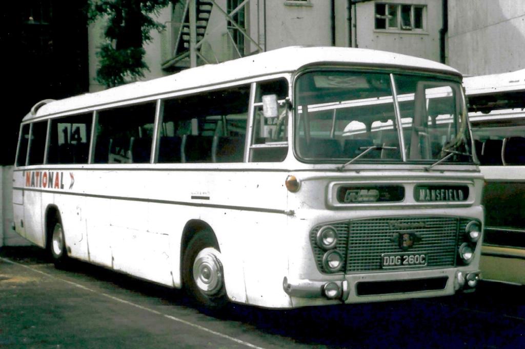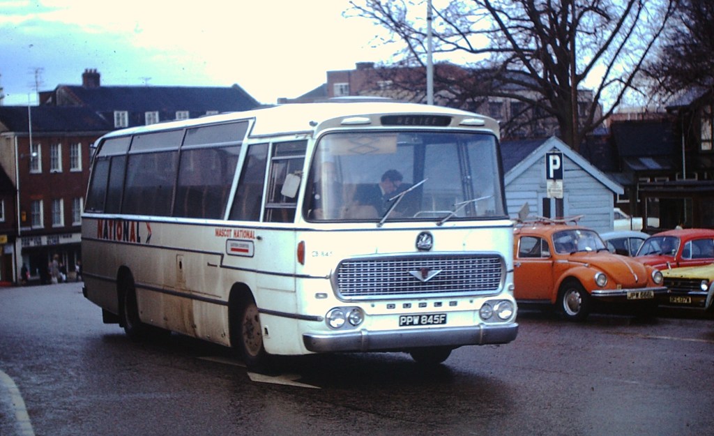 This is the first prototype ‘white coach’ prepared by Norman Wilson at Lowestoft‘s Eastern Coach Works in the week before the General Managers’ Conference in Leicester. It was revealed to General Managers Conference on the forecourt their hotel on 10 April, and was shown to the press two days later. The coach is Eastern Counties’ RE858. (Photo: NBC)