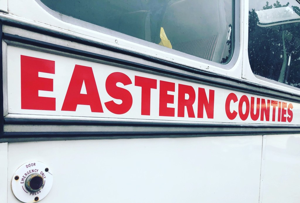 Wood and Wilson relented, marginally, in response to the latter argument and a compromise was attempted. First, a local fleetname was applied as a trial to the Eastern Counties coach used in the initial trial application of the identity, using Wilson’s bespoke National lettering, but at a height barely larger than the legal lettering and in a very light grey. It was almost invisible, and the General Managers were not placated.