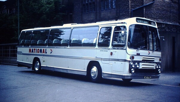 After being persuaded that – because of production techniques and climate – a silver coach in the style of Greyhound would not last well in Britain, Wilson and Wood wanted the coaches to be purely white, with the National branding of the NBC symbol and the NATIONAL logotype in red and blue. Operating companies were to be solely suppliers to NBC’s Central Activities Group, which took responsibility for the National coach network. Local company identities were not to appear on the white coaches at all, except in the tiny mandatory ‘legal lettering’ identifying the owner at the bottom of the bodyside There was a degree of scepticism, and even push-back against the idea of a uniform corporate identity, particularly from operating companies whose local liveries in some cases could be traced back to the start of motor coaches at the beginning of the 20th century.